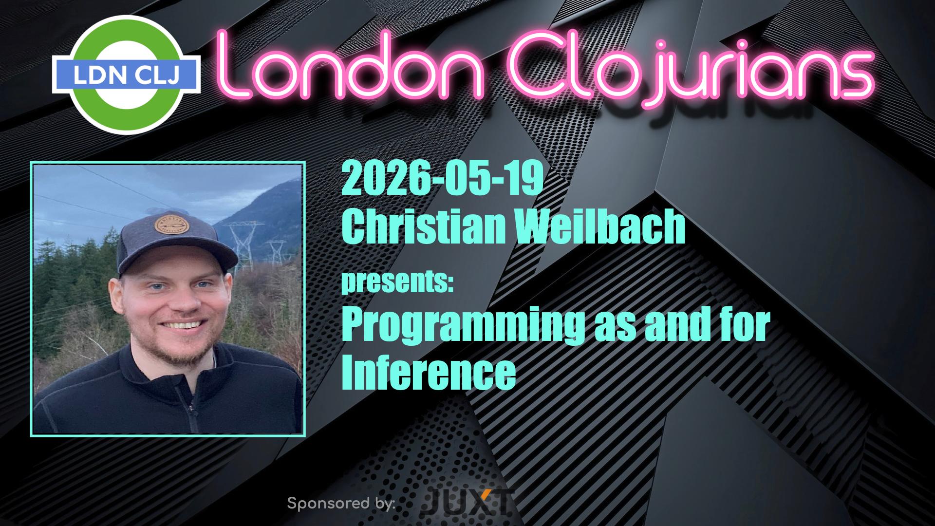 Computation is the organization and application of knowledge. When we program, we draw on memory of code and data, structure our operations syntactically as code to be evaluated, for example in a REPL, and test them as hypotheses against an unknown environment — programming itself is a form of inference. Christian will argue that Clojure, as a functional Lisp with a live REPL, persistent values, and macros, is uniquely positioned to be a (meta)programming medium for artificial intelligence and explicit inference, demonstrating this through three building blocks for modelling living organisational systems: a git-like memory model (Datahike, Yggdrasil), flexible construction and interpretation of models and languages (Raster, Ansatz), and a unified framework integrating these abstractions (Spindel, Simmis). The talk includes live demos — including a Clojure columnar index that beats or matches DuckDB in benchmarks, and a typed-dispatch compiler producing numerics competitive with Julia and JAX. All projects open-sourced at replikativ · GitHub .