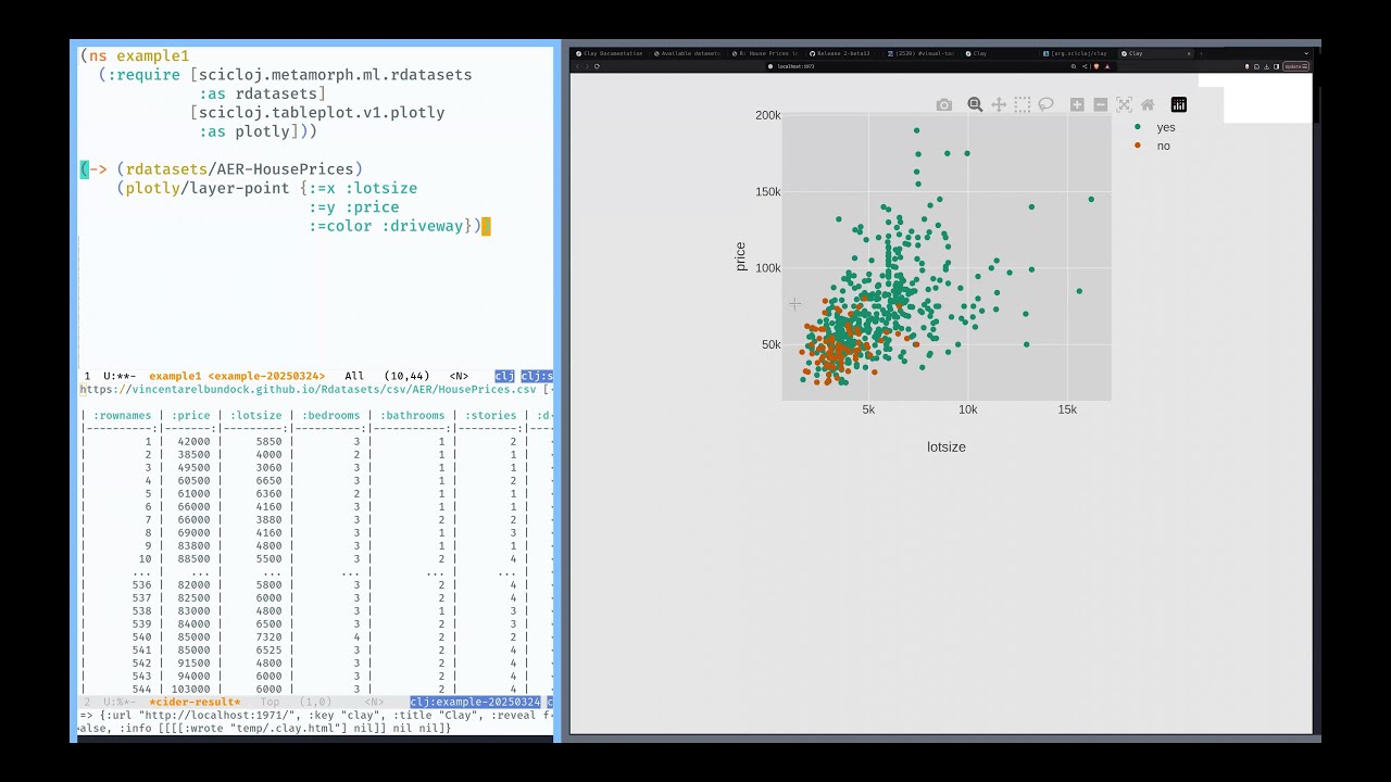 In the meeting, @daslu gave an overview of Clay, a REPL-friendly tool for data visualization and literate programming.