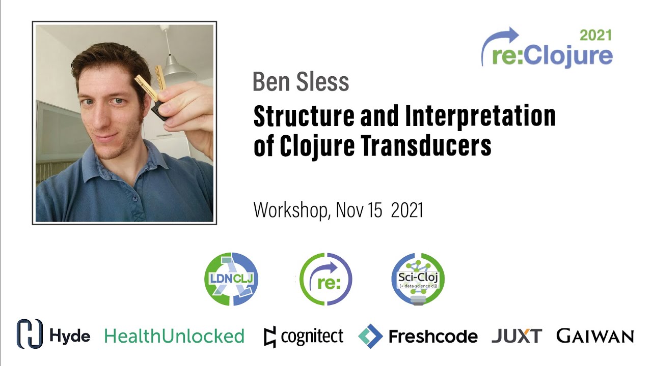 Note: This workshop covers material that is best understood by reviewing a prior workshop: “The Structure and Interpretation of Clojure Transducers”