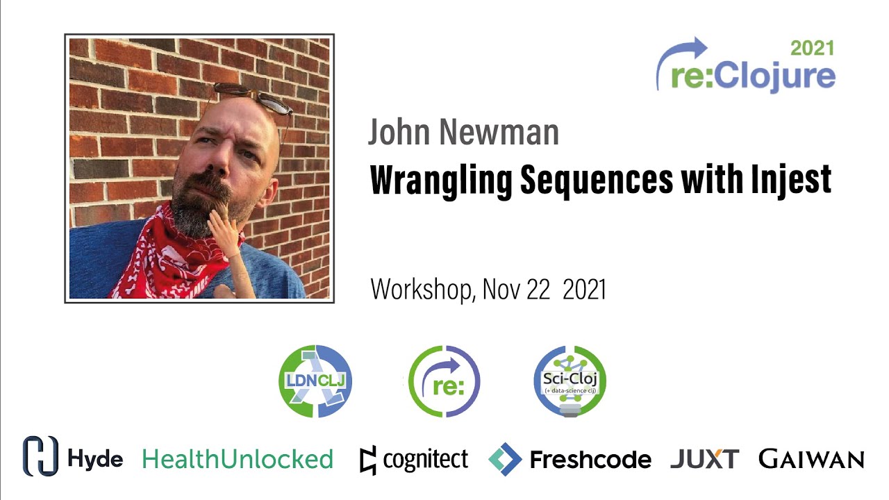 Summary: Injest provides thread macros (e.g. x>>, =>>) that lower the bar to higher performance by letting you compose transducers in the same way as you would with ->>. In this workshop we will introduce you to injest’s three main features: path threads, auto transducification and auto parallelization. Then, we’ll go over some real-world examples of transforming (wrangling) data sequences. We’ll spend the remaining time of the workshop in an open session, answering questions and trying things out at the REPL. I might even wear a cowboy hat, in further jest